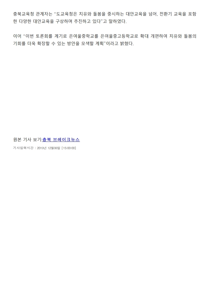 » 2019 충북교육청, 충북 공립 대안학교 발전 방안 토론회-브레이크 뉴스(2019.12.6) file 관리자 2020.01.17 799