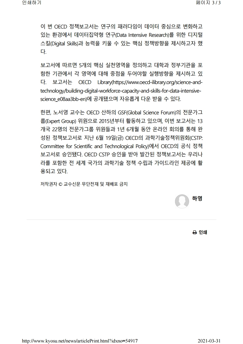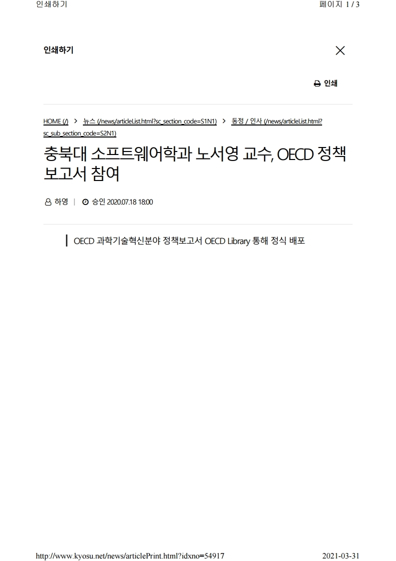 충북대 소프트웨어학과 노서영 교수, OECD 정책보고서 참여