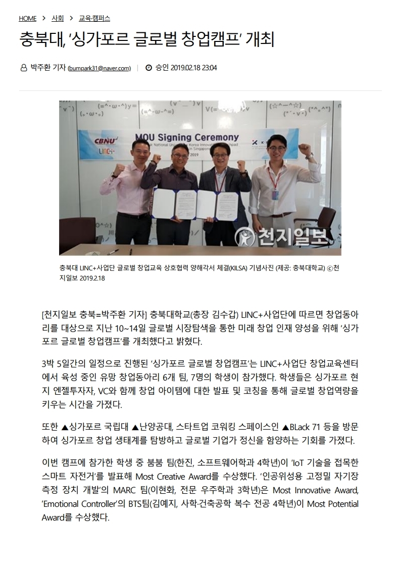 » 2019 충북대, '싱가포르 글로벌 창업캠프 개최'-천지일보(2019.2.18) file 관리자 2020.01.17 753