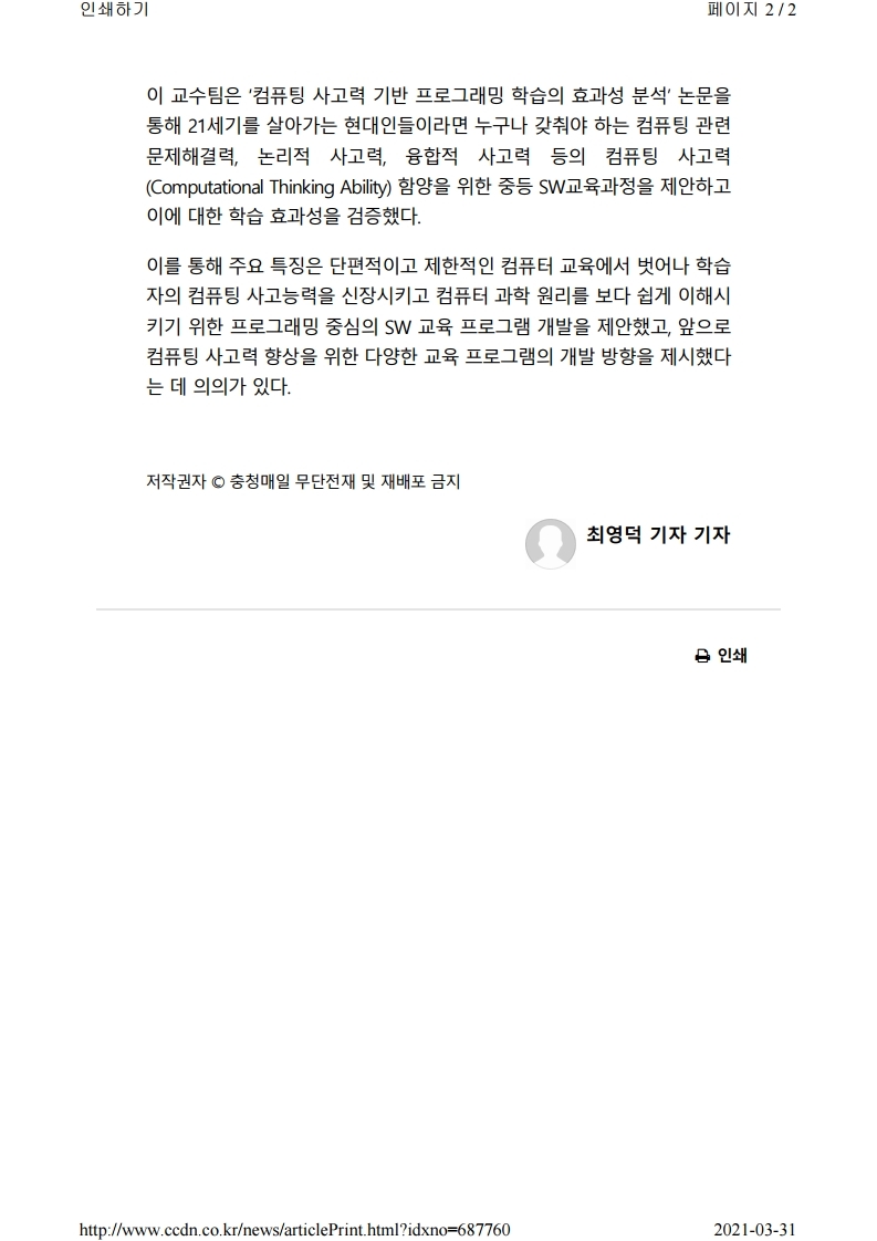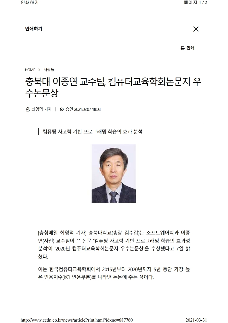 » 2021 충북대 이종연 교수팀, 컴퓨터교육학회논문지 우수논문상 file 관리자 2021.03.31 929